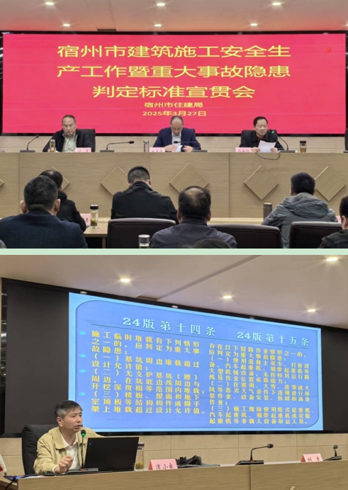 为深刻汲取事故教训,压实安全管理人员责任,提高建筑施工项目管理人员的责任意识和安全管理能力,市住建局组织建筑施工安全生产工作暨重大事故隐患判定标准集中宣贯培训,局二级调研员孙金江主持会议,局党组书记、局长姚爱洋出席会议并讲话。