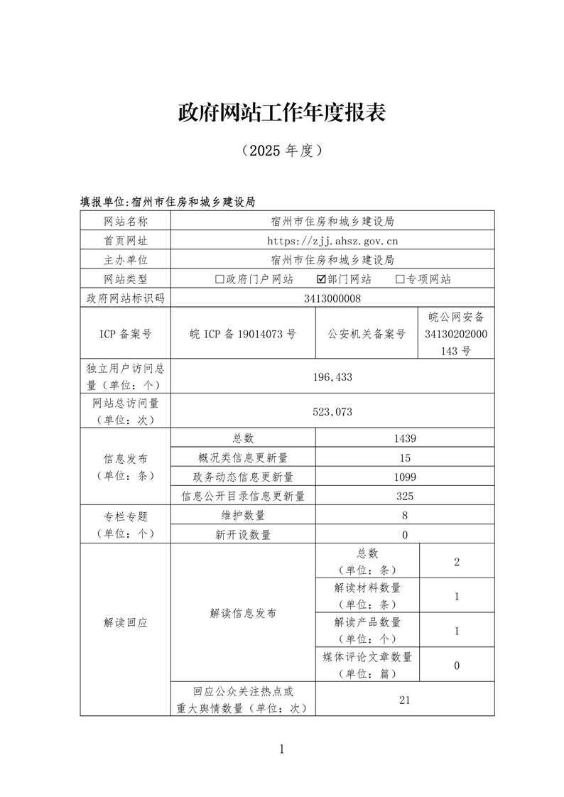 宿州市住房和城乡建设局2025年度政府网站工作报表 |