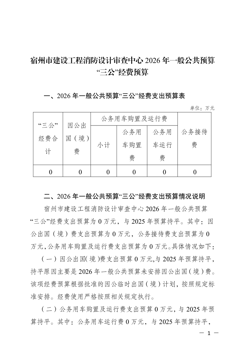 宿州市建设工程消防设计审查中心2026年一般公共预算“三公”经费预算 |