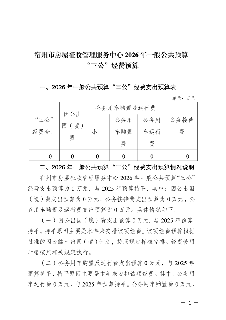 宿州市房屋征收管理服务中心2026年一般公共预算“三公”经费预算 |