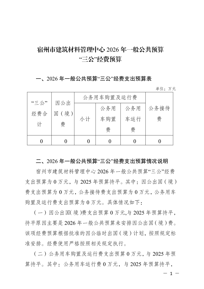 宿州市建筑材料管理中心中心2026年一般公共预算“三公”经费预算 |
