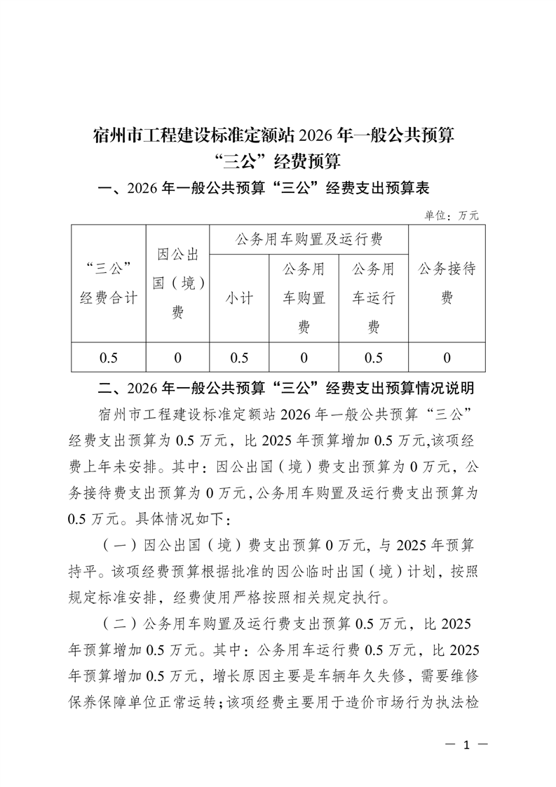 宿州市工程建设标准定额站2026年一般公共预算“三公”经费预算 |