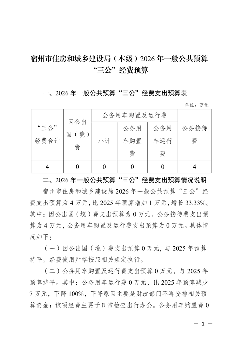 宿州市住房和城乡建设局(本级)2026年一般公共预算“三公”经费预算