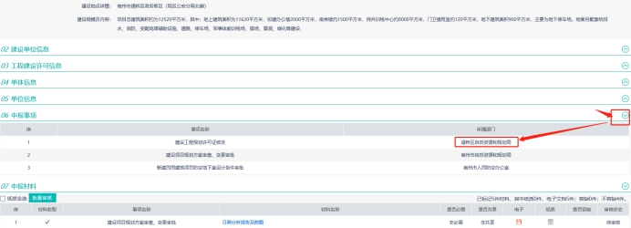 五、综合窗口可展开申报事项,查看跨级申报业务是否申报正确,核实无误后进行材料审核,统一收件后,办件会自动分发至相应辖区和层级的审批业务部门办理人。