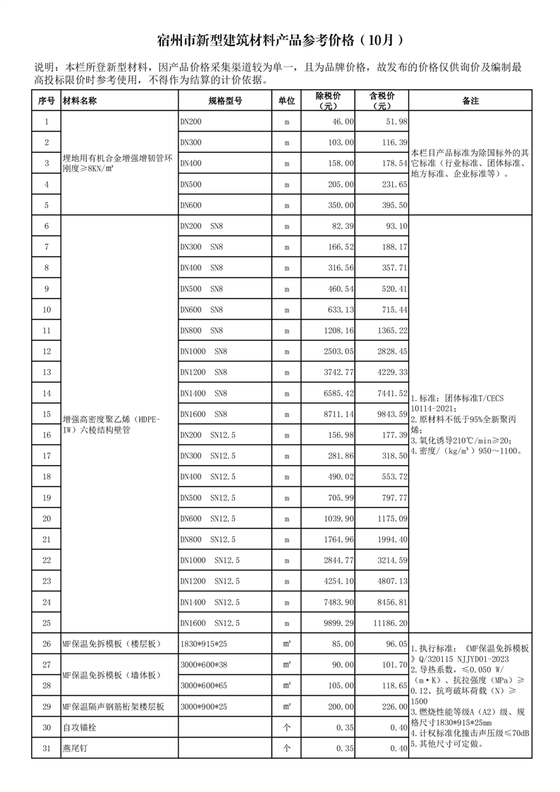 4.宿州市新型建筑材料产品参考价格(2025年10月)