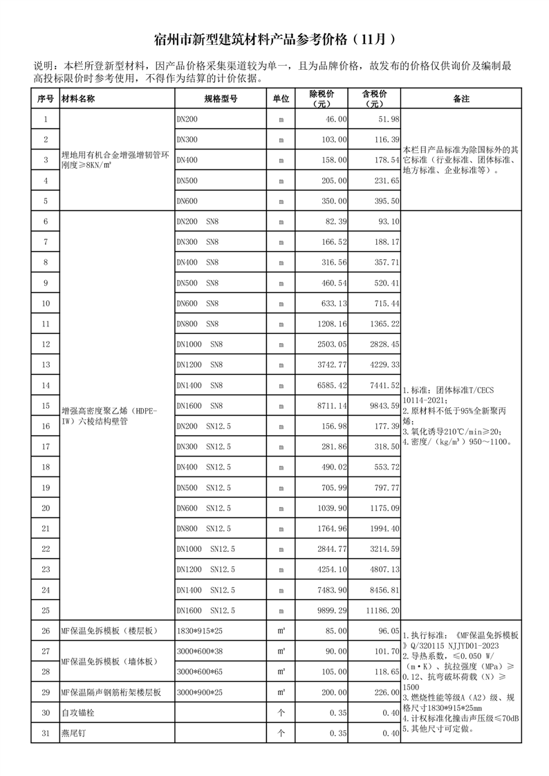 4.宿州市新型建筑材料产品参考价格(2025年11月)